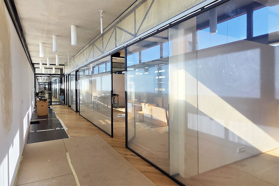 Na projektu přístavby administrativní budovy společnosti Area Four Industries v Roudnici nad Labem jsme úspěšně finišovali s dodávkou prosklených kancelářských příček s PDLC stmívatelnými skly.