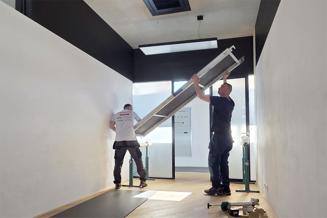 Práce byly dokončeny v minulém týdnu. Montáž konstrukcí prosklených příček a obkladů nadpraží proběhla v rekordním čase tří týdnů.