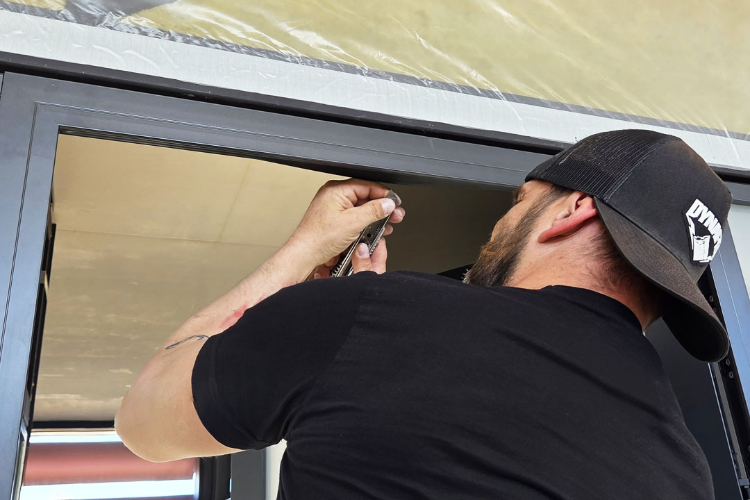 Současně také s montáží obkladu nadpraží příček z nábytkových desek MDF, které provádí naše sesterská firma ESPAI Interiér (www.espai.cz).