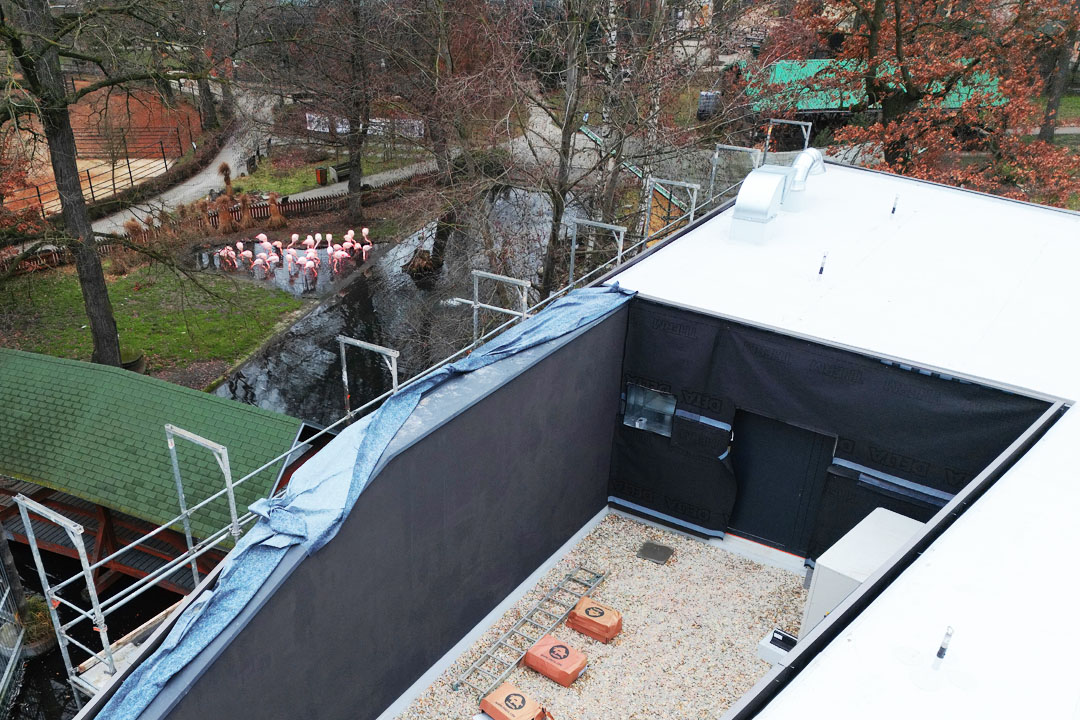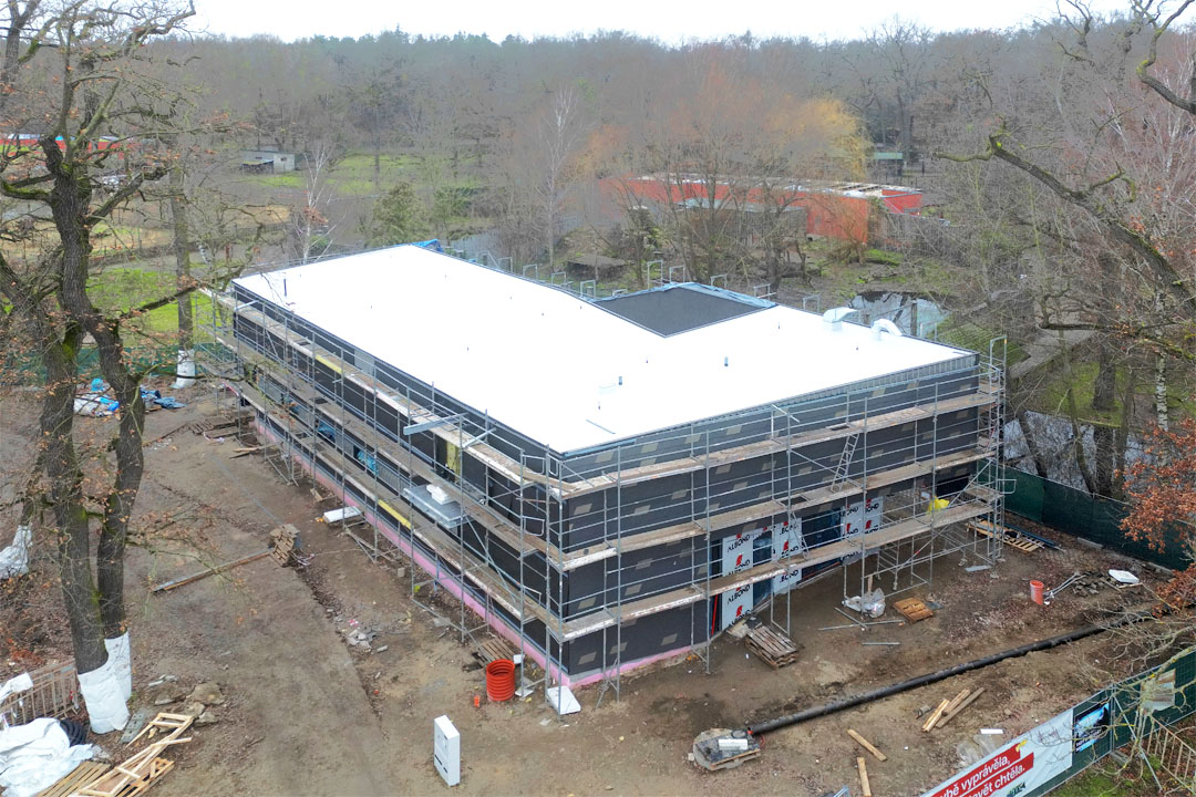 At the end of the year, we entered the final phase of installing a lightweight curtain wall made from the PREFA system and bonded panels on the aquarium pavilion building at the Hodonín Zoo.