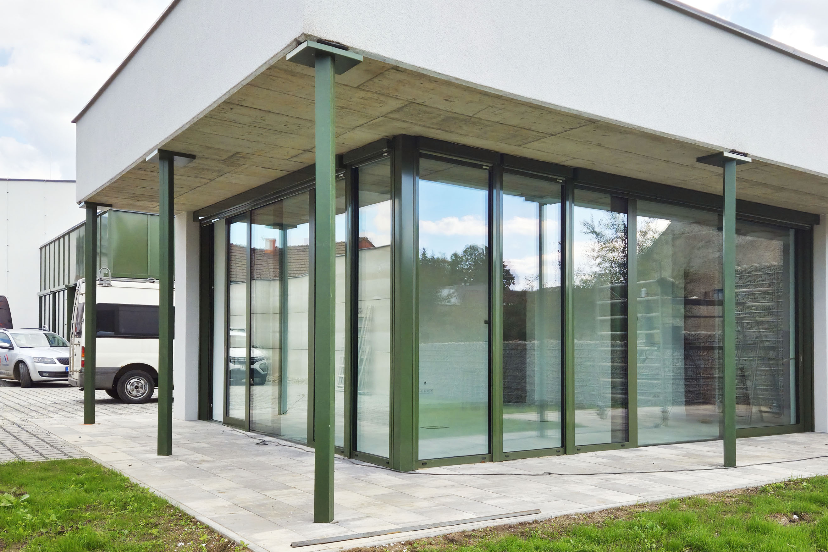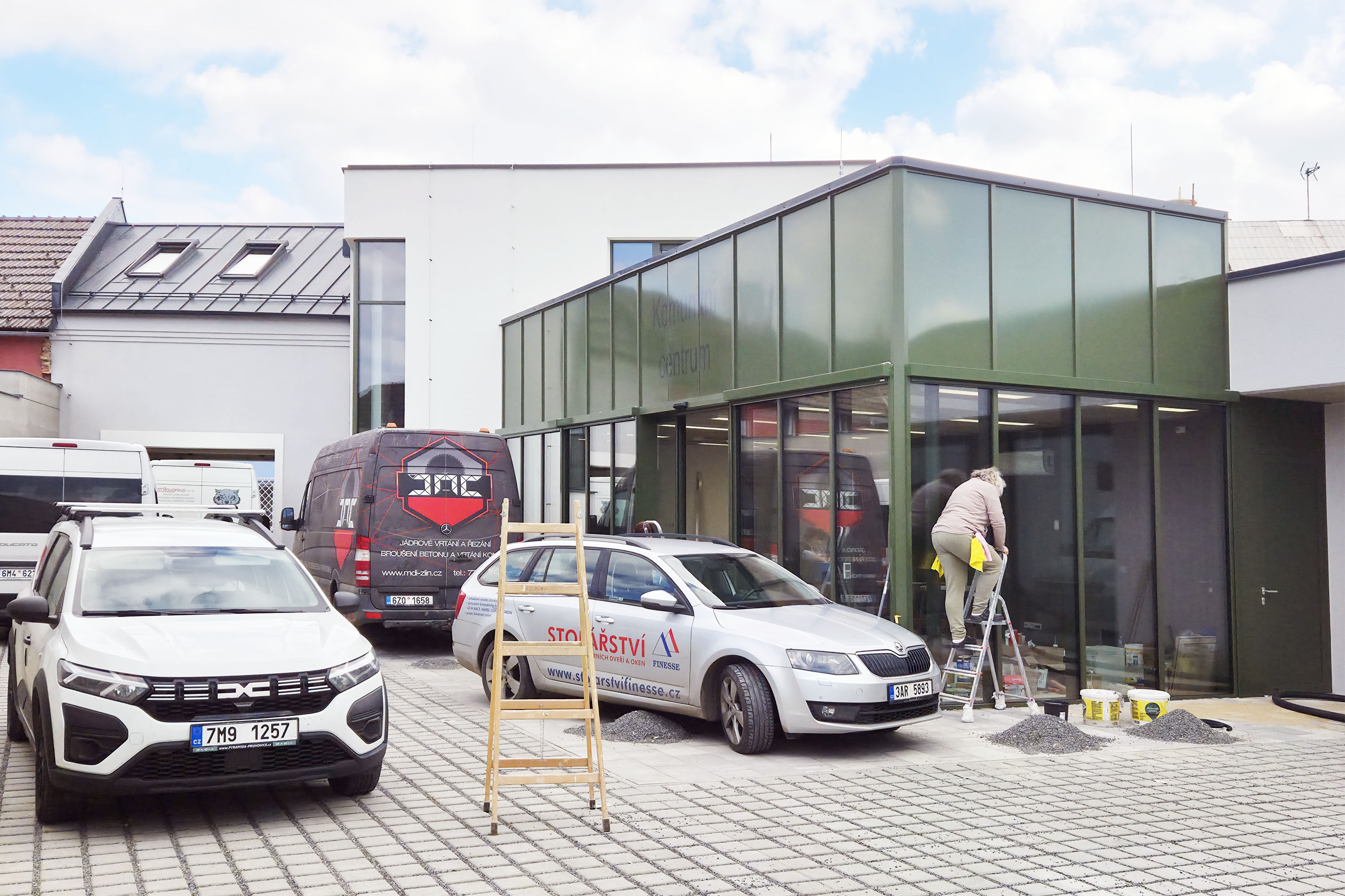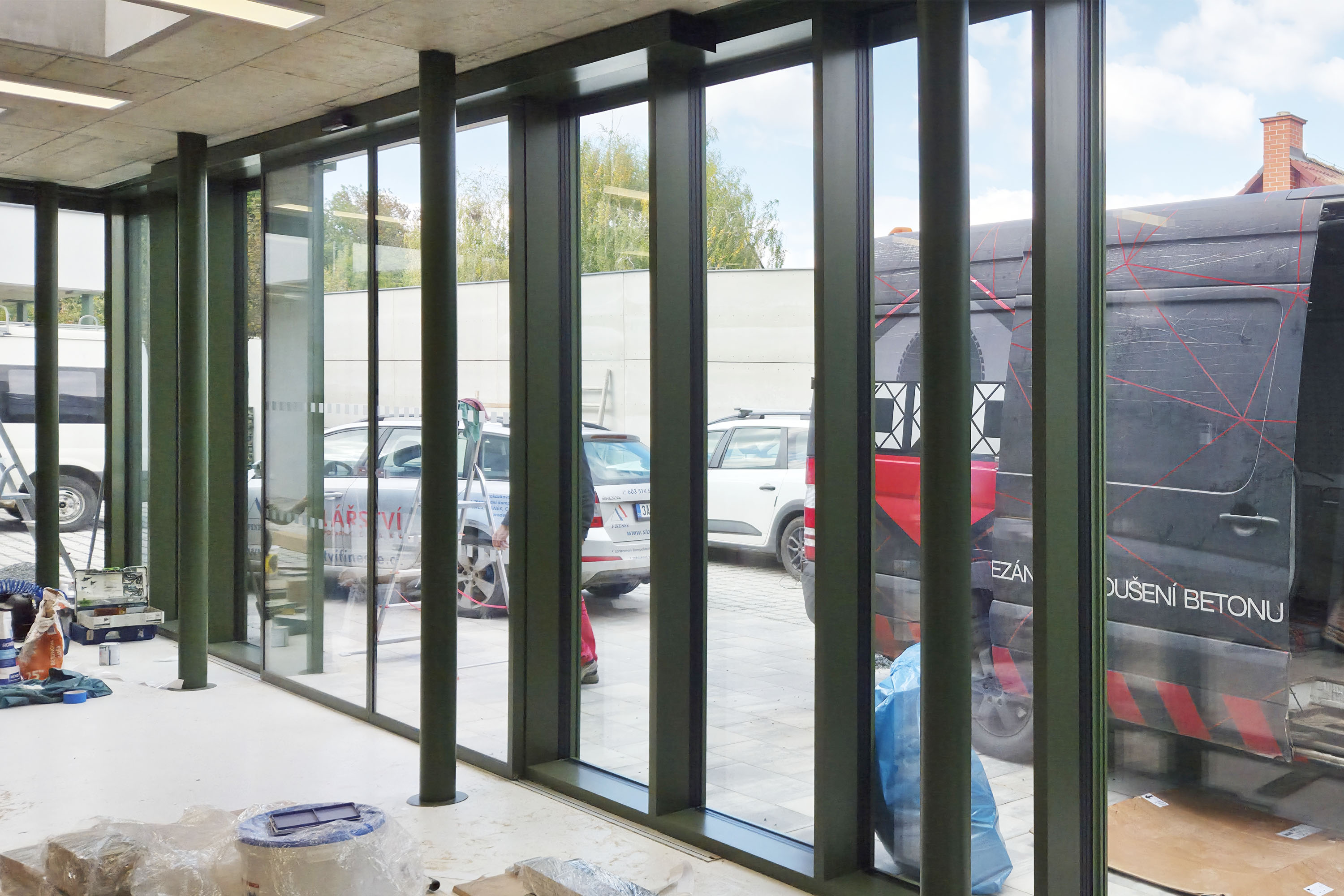 In October 2025, we completed our part of the delivery by installing security features on automatic doors and handed over glass structures, aluminum fillings for openings, glass facades, and skylights for the completed project "Community Center in Velký Týnec near Olomouc."