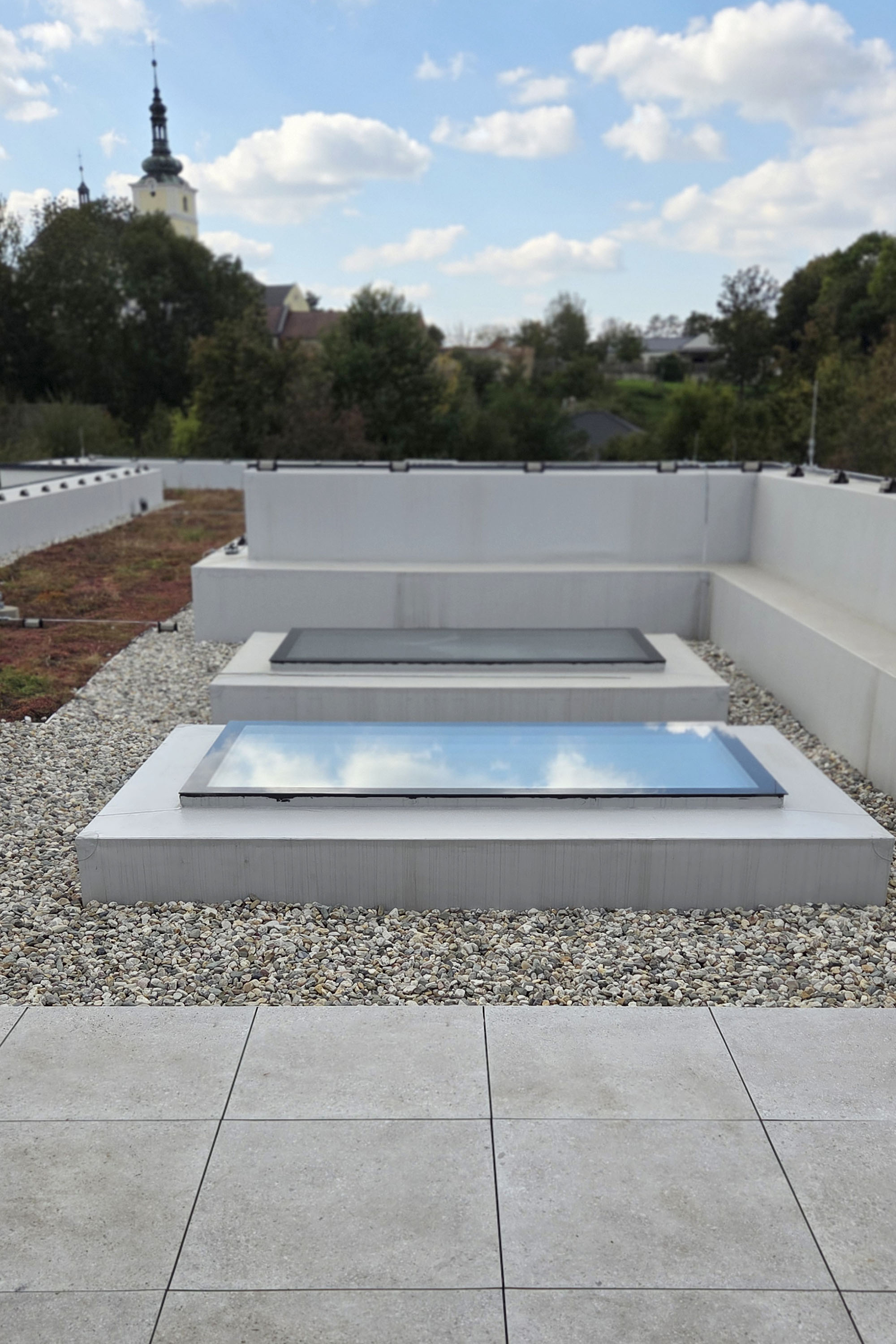 The skylights, which were installed without the slope required by the standard, deserve special mention. However, thanks to our innovative design solution, even this type of installation is possible without the risk of leakage.